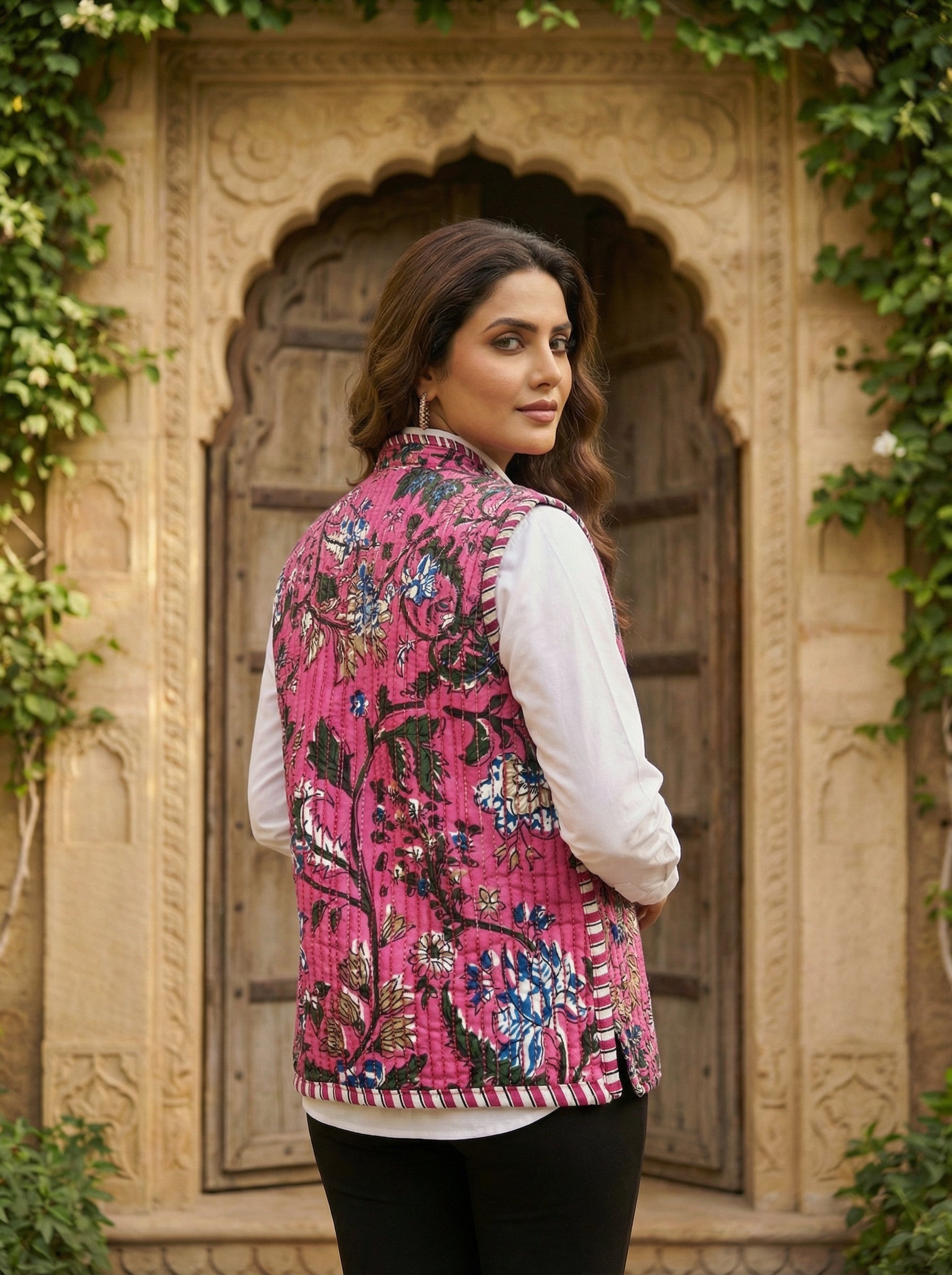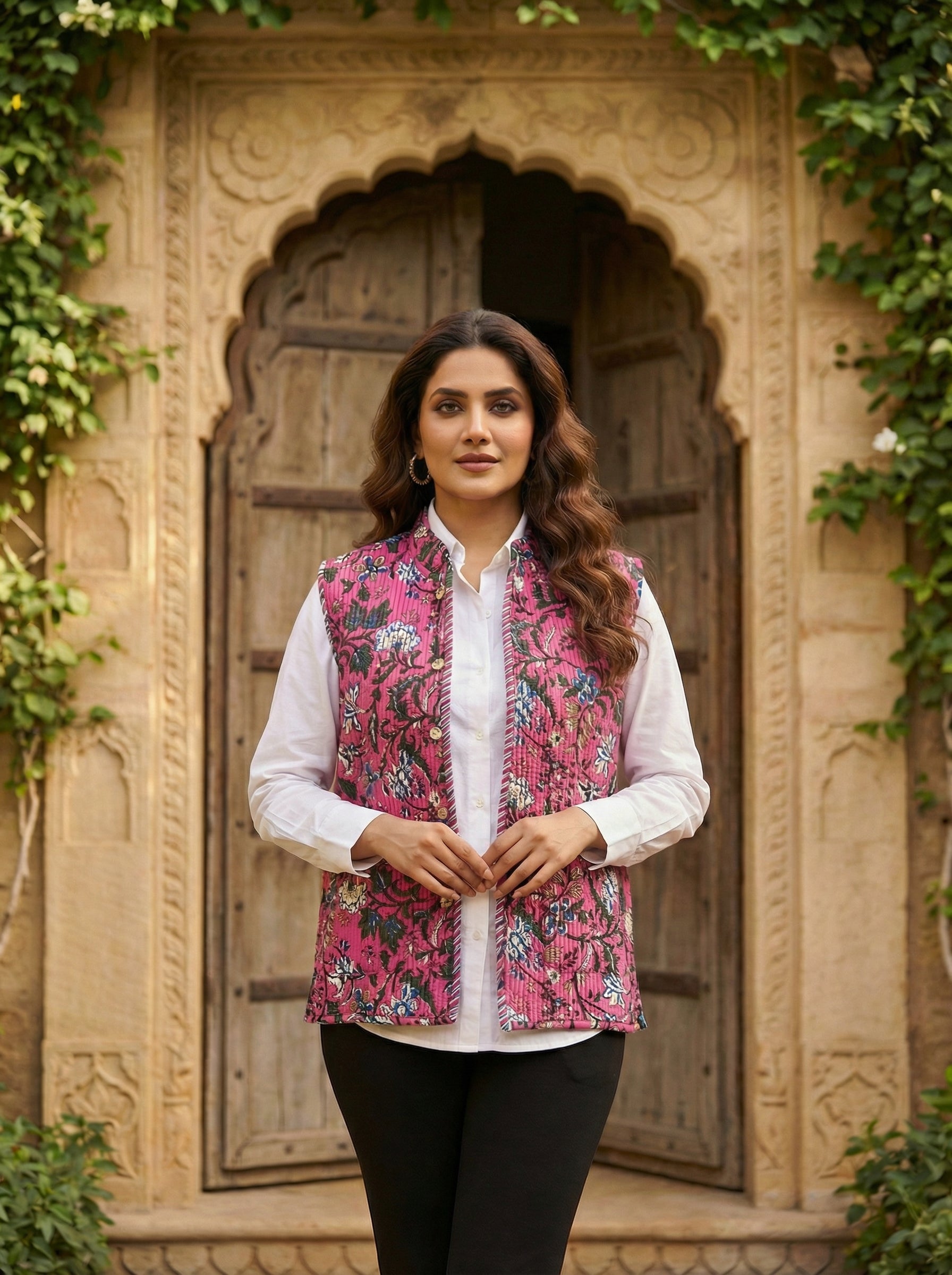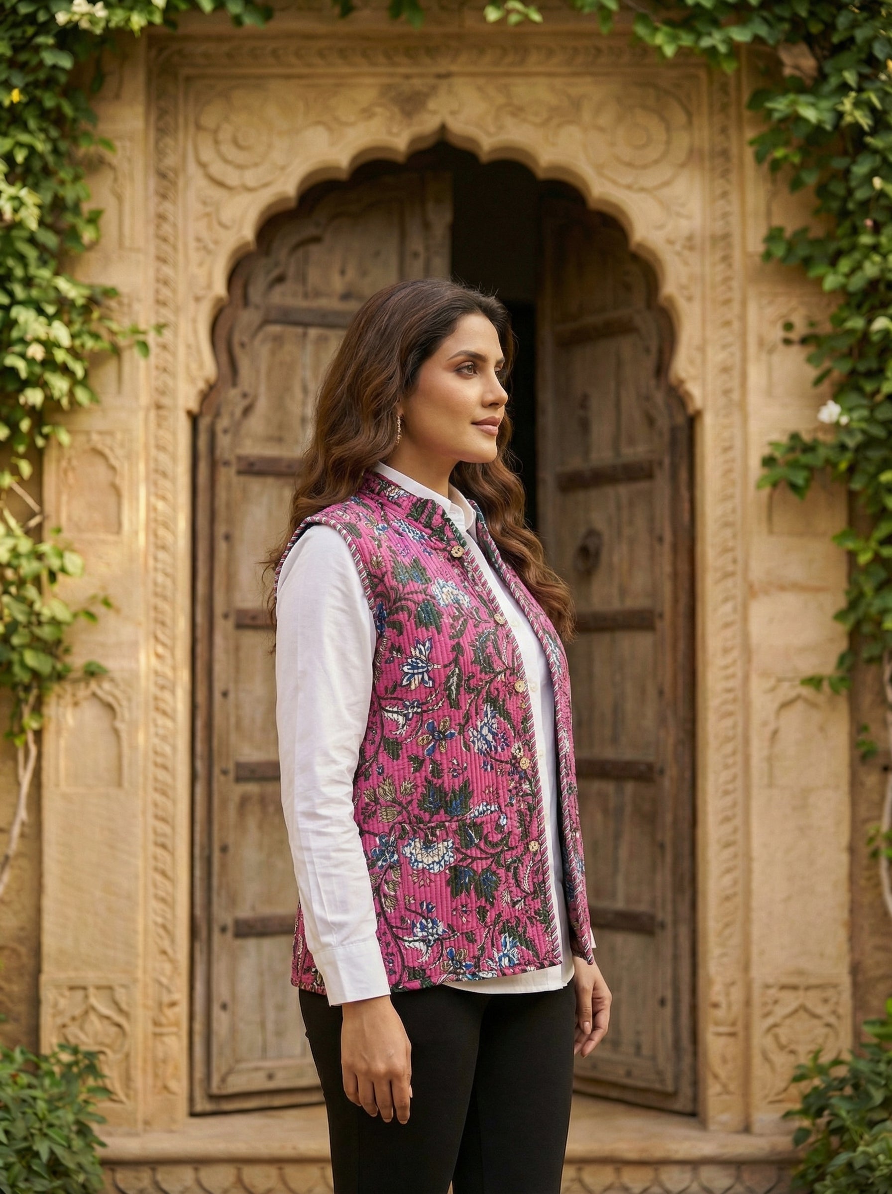 Petal Drift Cotton Reversible Quilted Jacket Vest