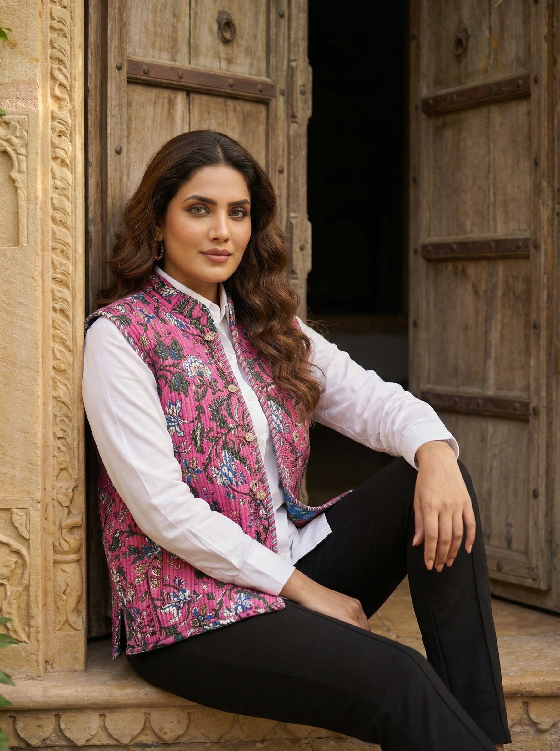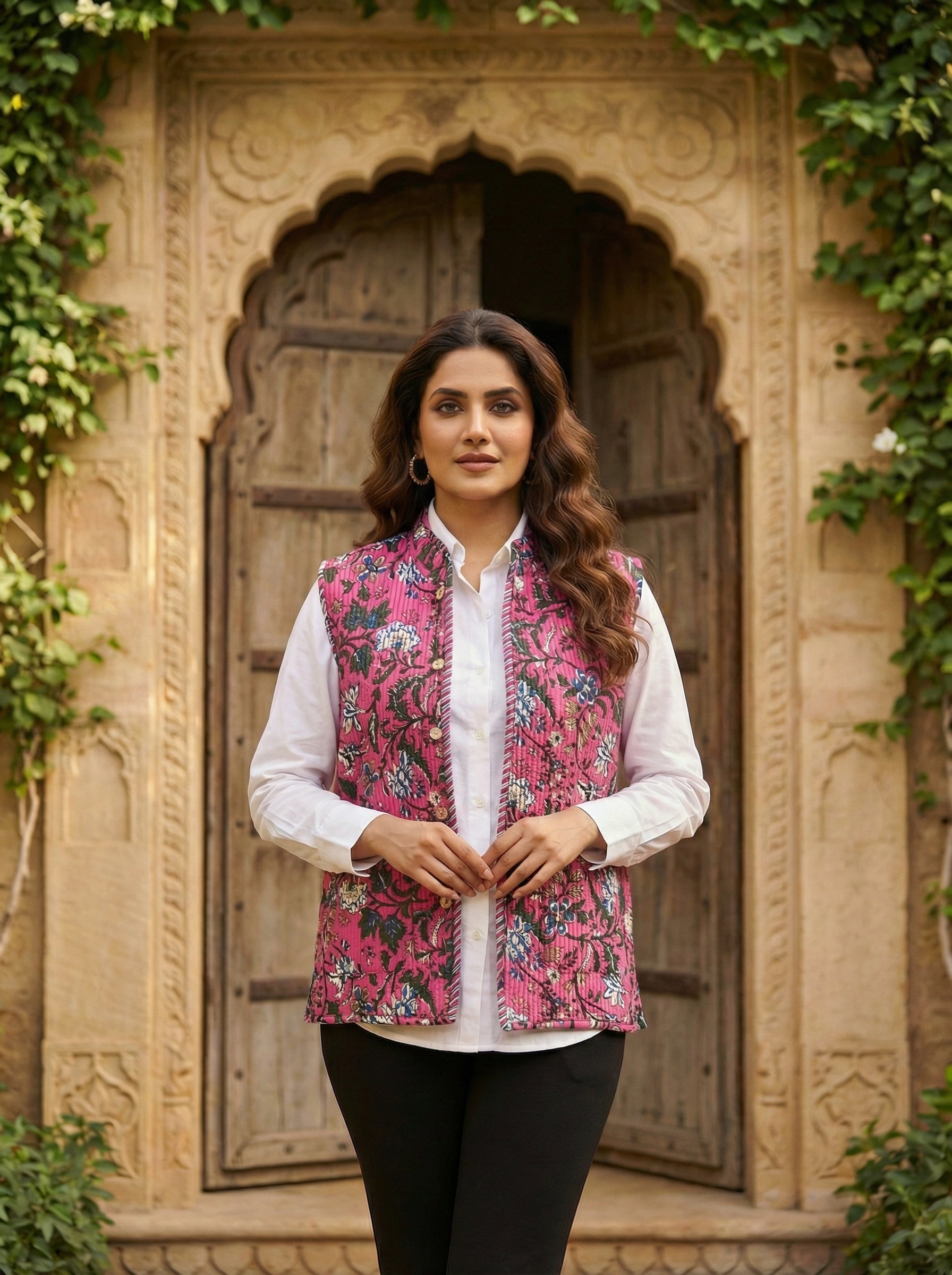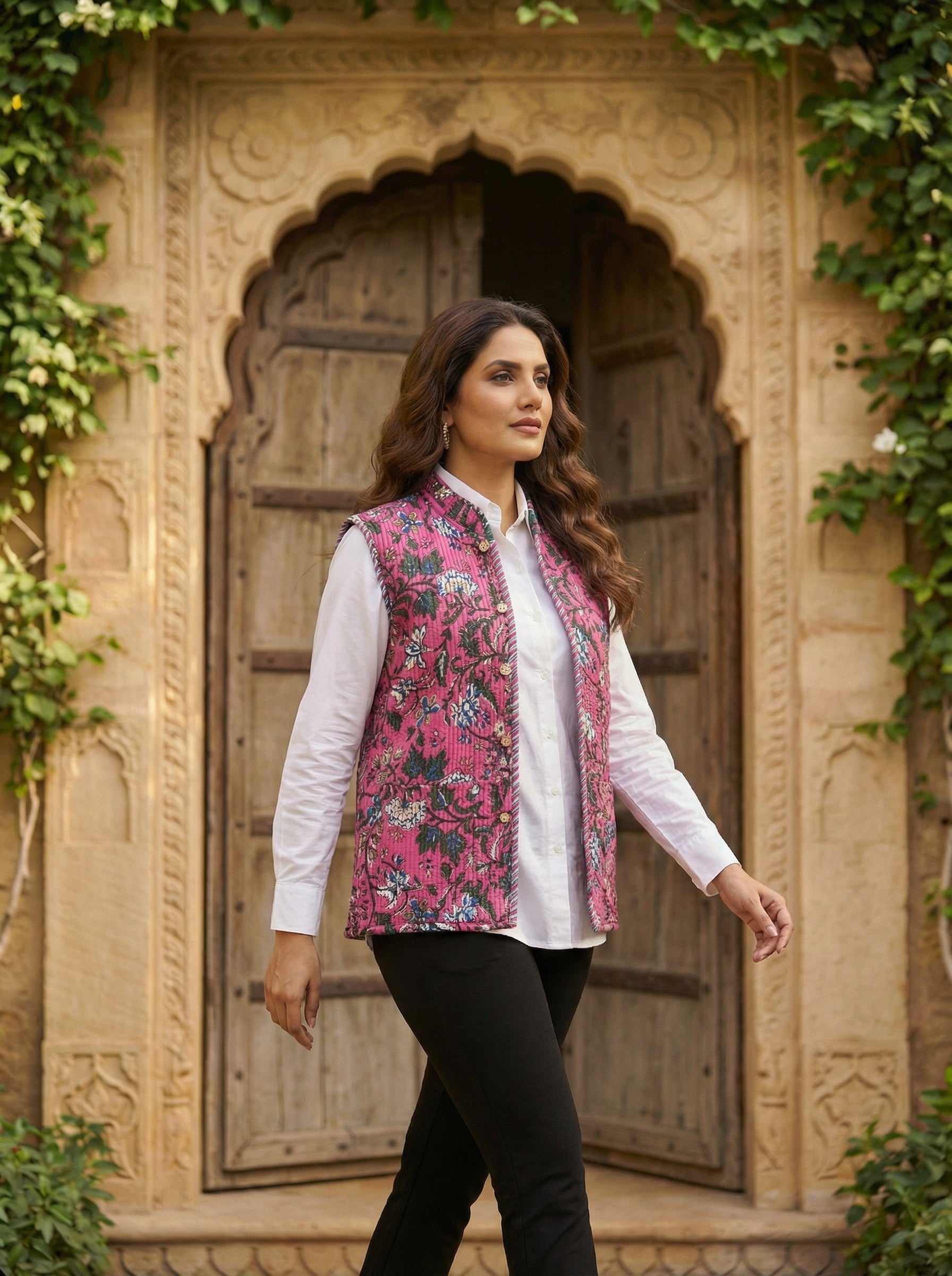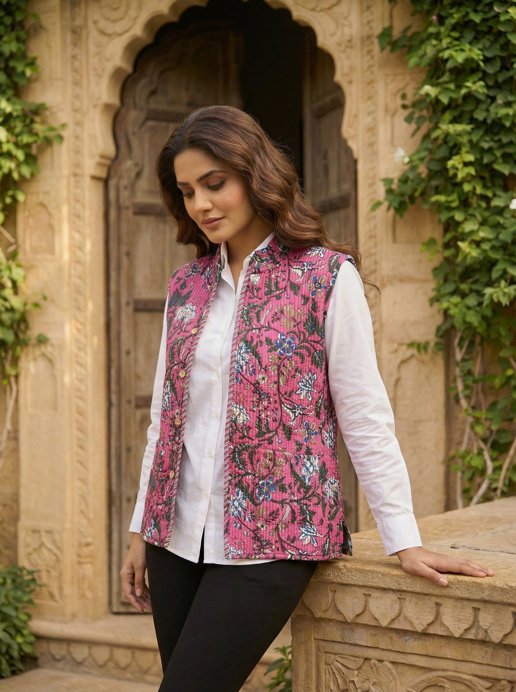 Petal Drift Cotton Reversible Quilted Jacket Vest